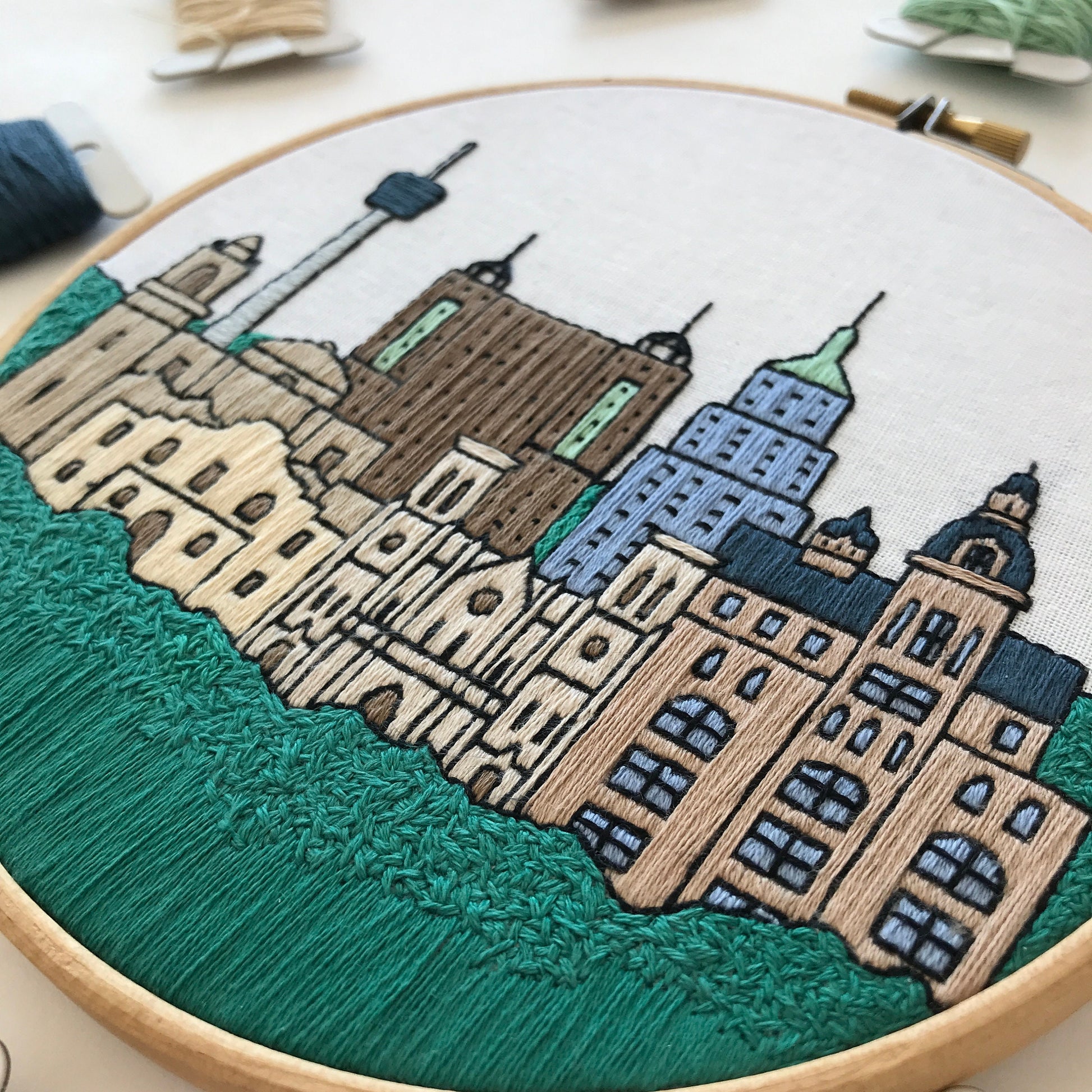 Handstickmuster von San Antonio, TX, USA + ausführliche Stickanleitung.