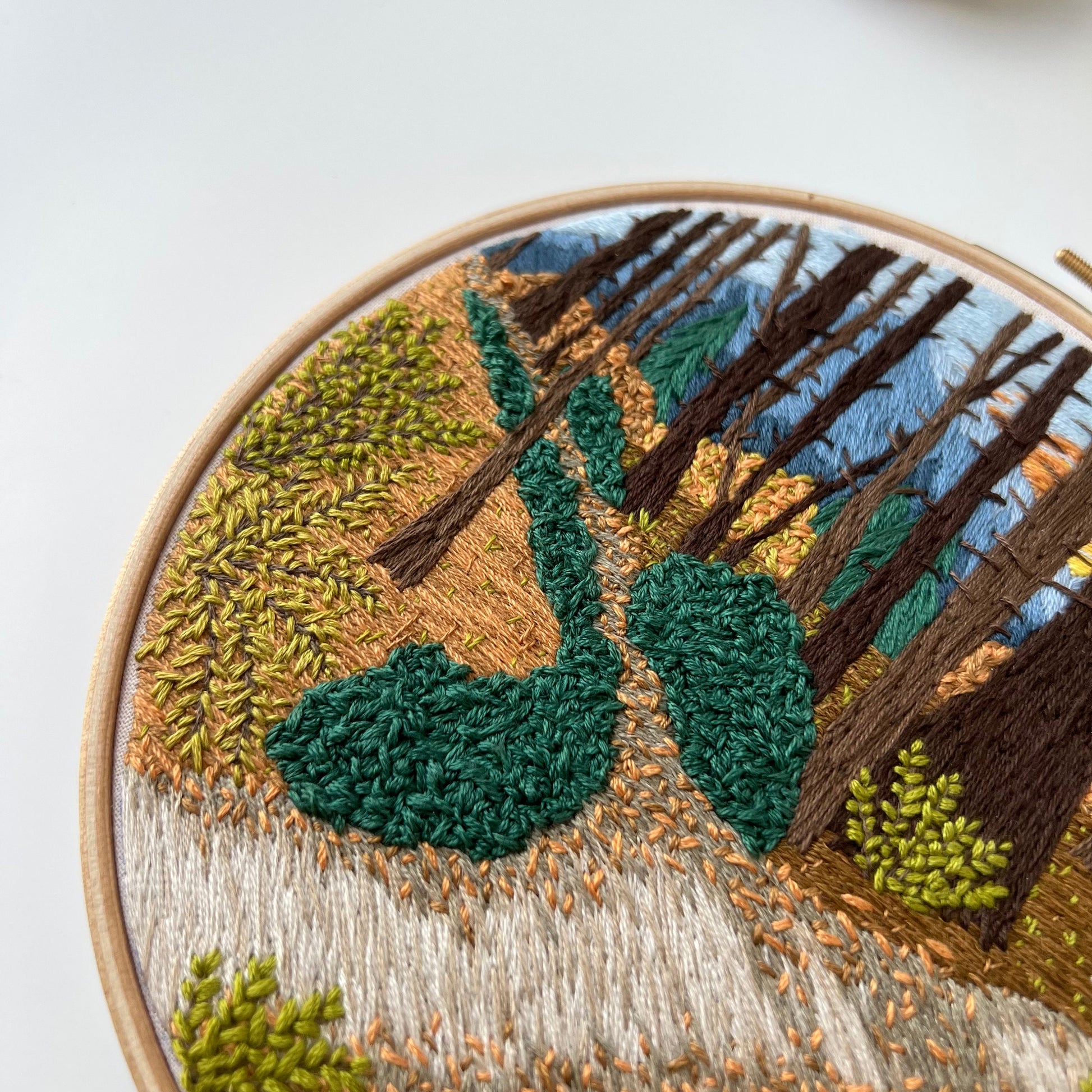Hand embroidery pdf pattern - The road not taken, autumn forest embroidery pattern. Create embroidery of autumn forest with interesting textures.