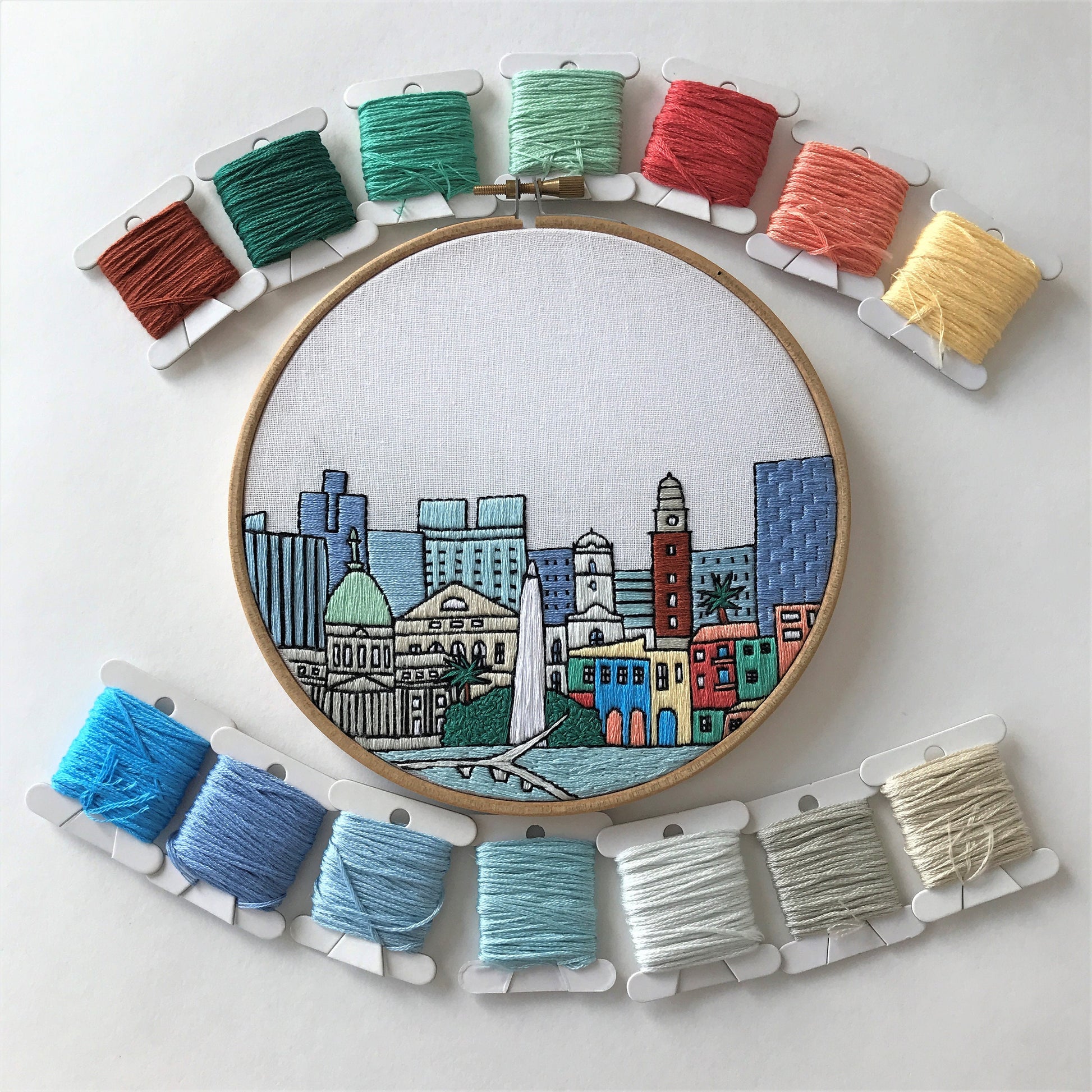 Hand embroidery PDF pattern of Buenos Aires, Argentina + thorough embroidery guide.