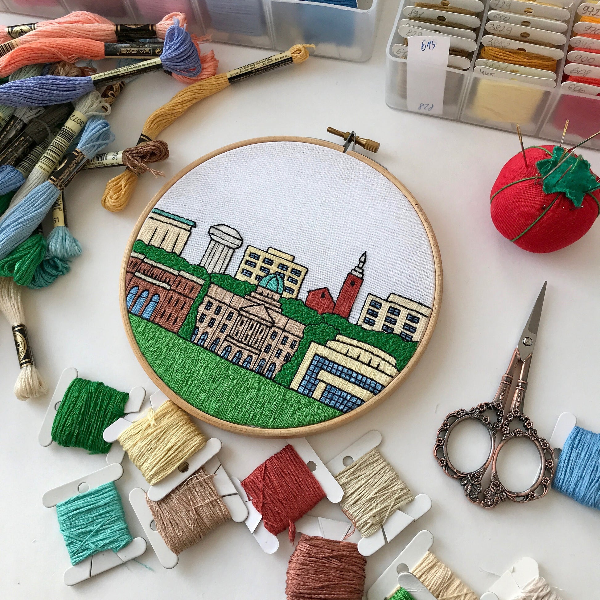 Hand embroidery pattern of College Station, TX, United States + thorough embroidery guide.
