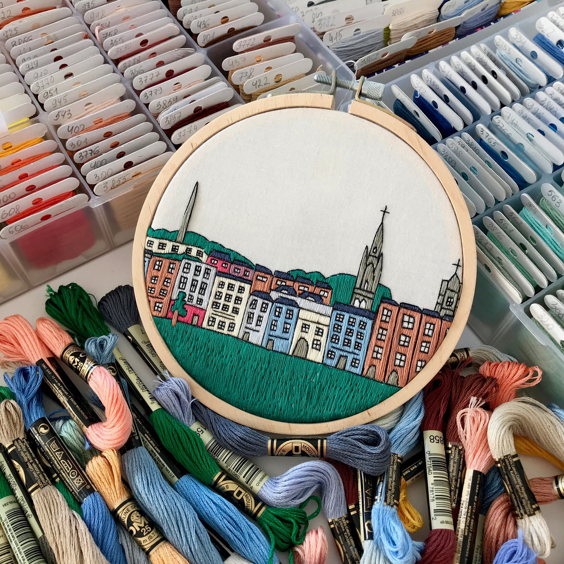 Hand embroidery pattern of Dublin, Ireland + thorough embroidery guide.