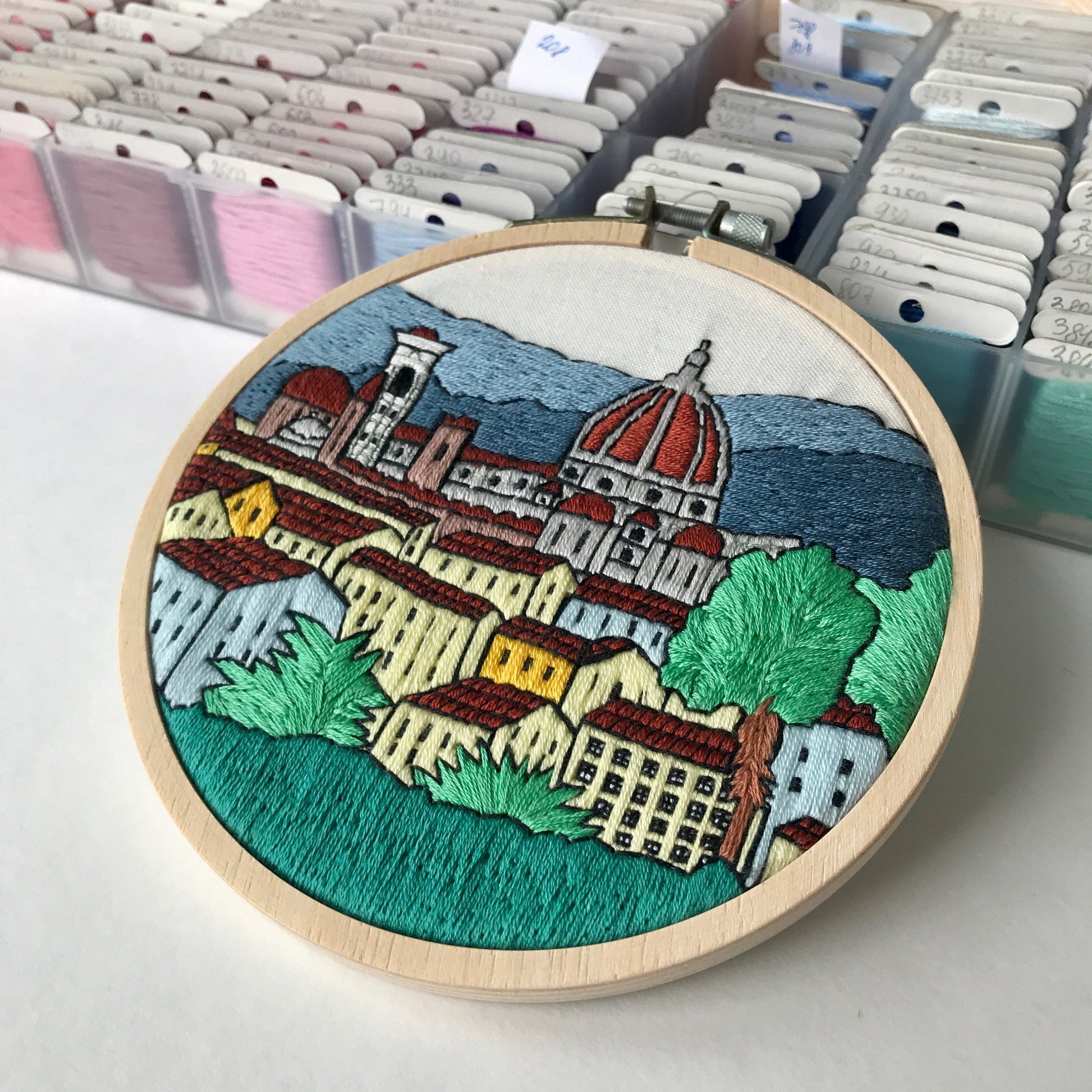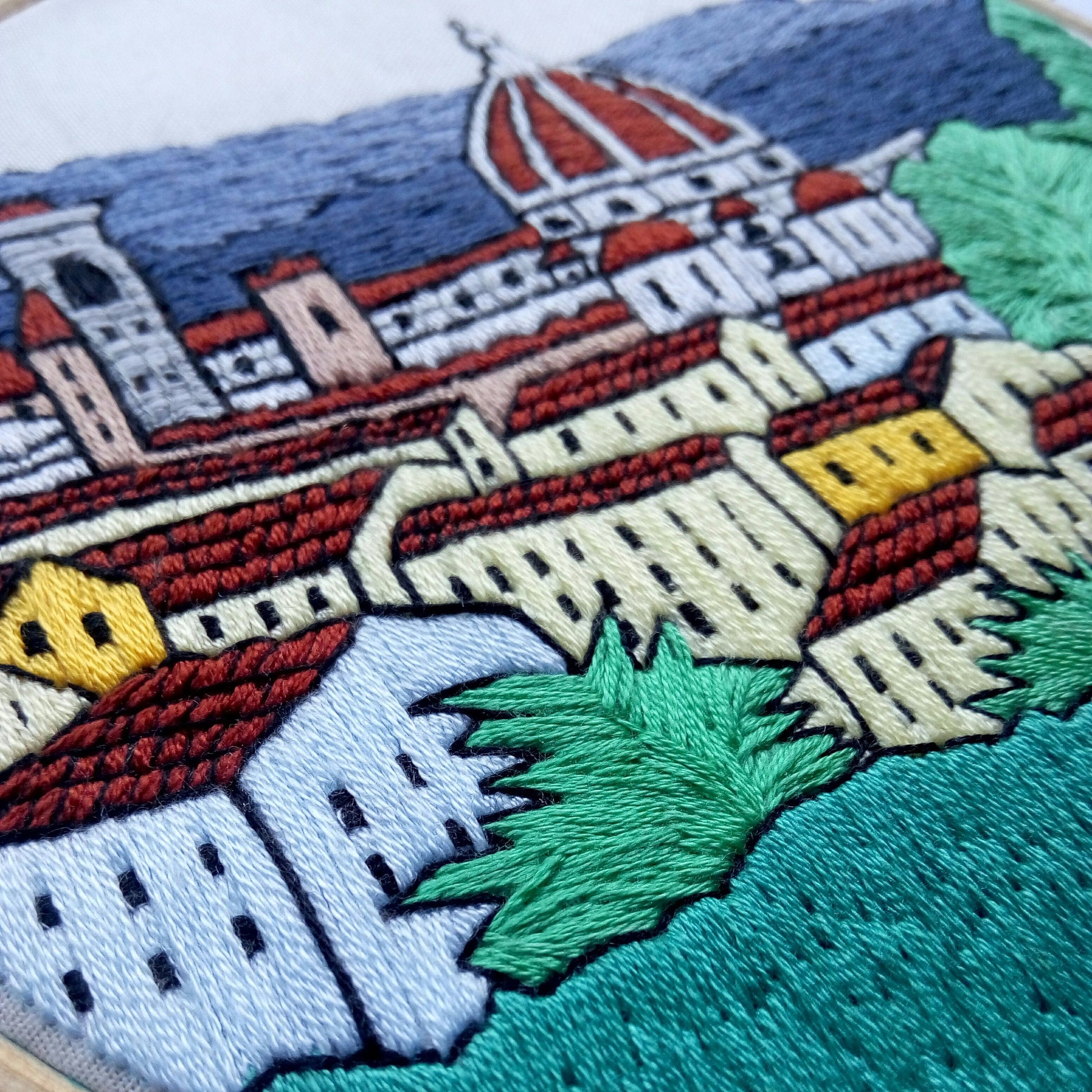 Hand embroidery pattern of Florence, Italy + thorough embroidery guide.