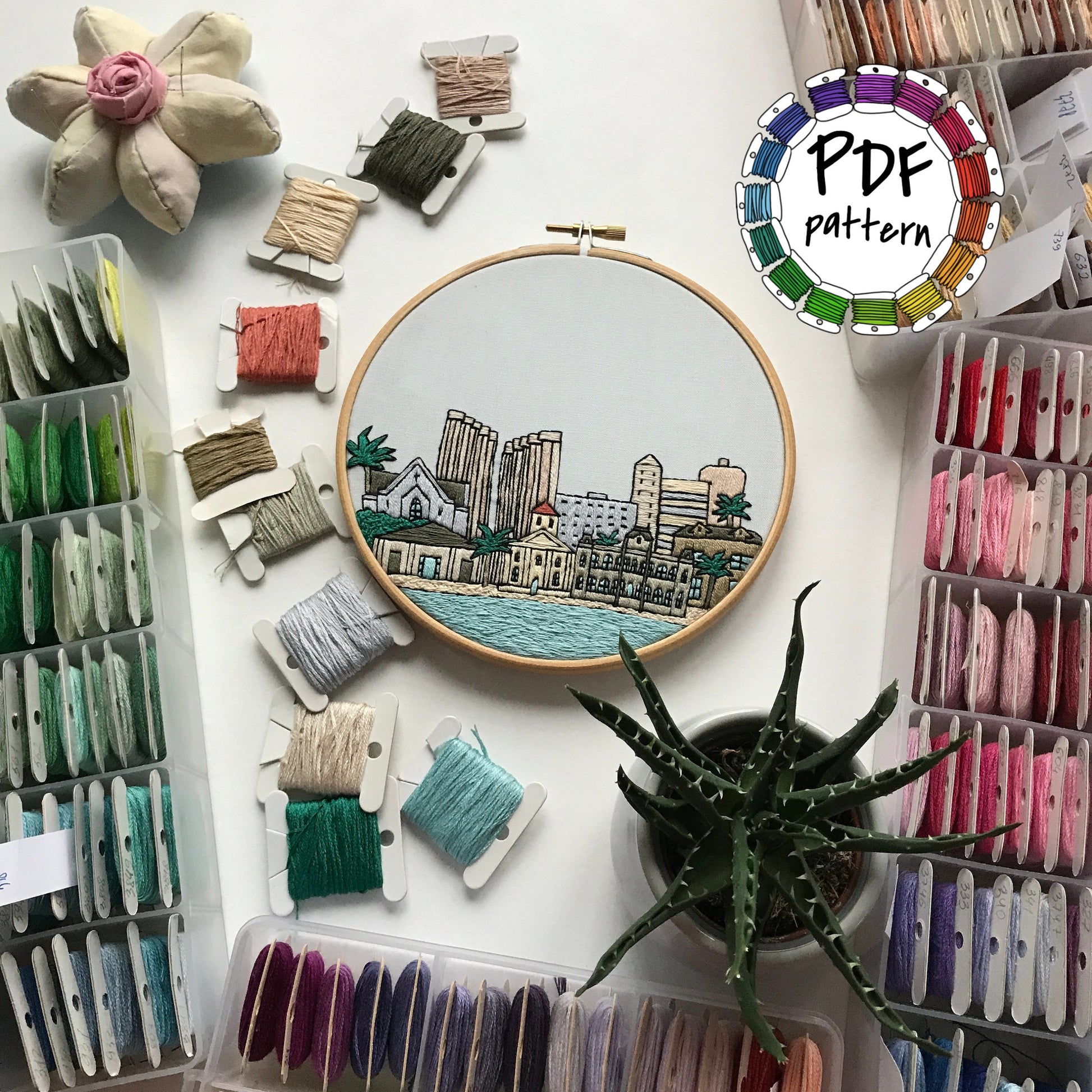 Honolulu, HI, Skyline - Hand Embroidery Pattern (PDF)