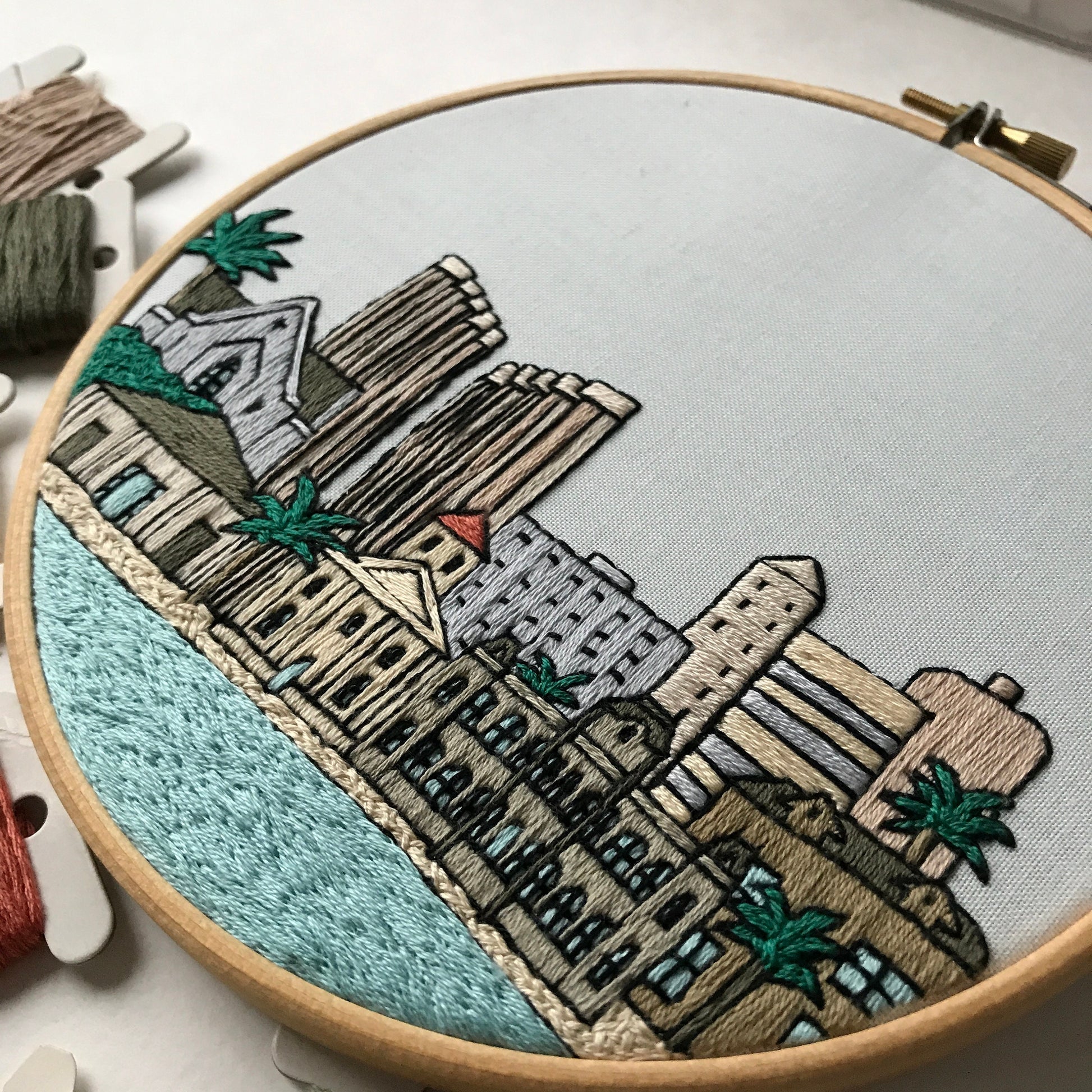 Hand embroidery pattern of Honolulu HI, United States + thorough embroidery guide.