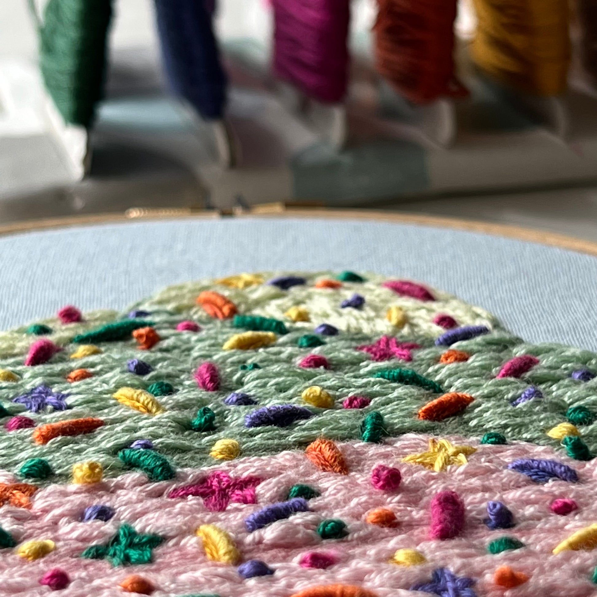 Create your own ice cream cone embroidery with sprinkles using this hand embroidery pattern.