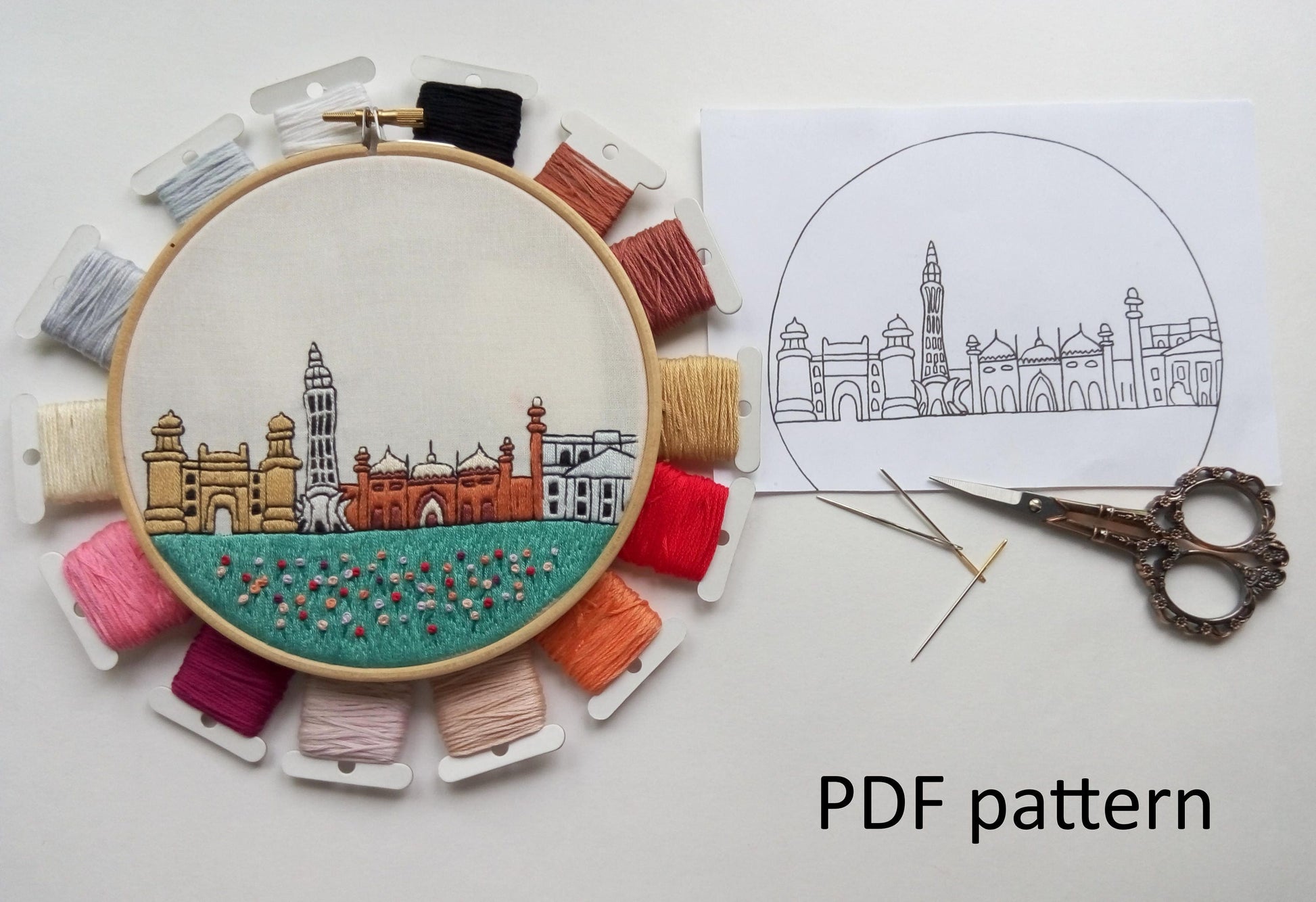 Lahore, Pakistan, Cityscape - Hand Embroidery Pattern (PDF)