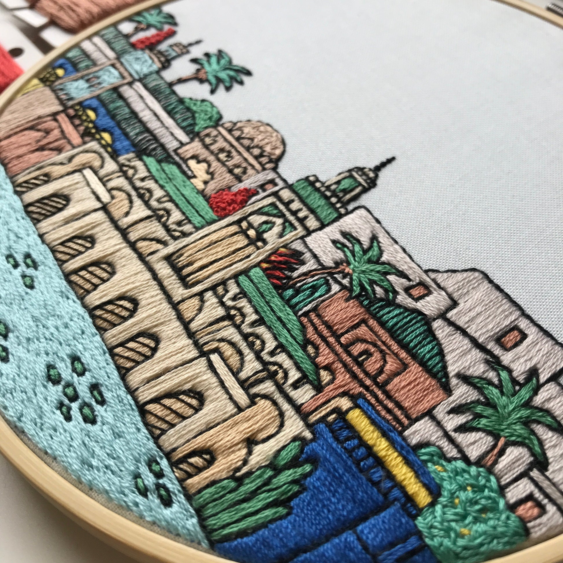 Hand embroidery pattern of Marrakesh, Morocco + thorough embroidery guide.
