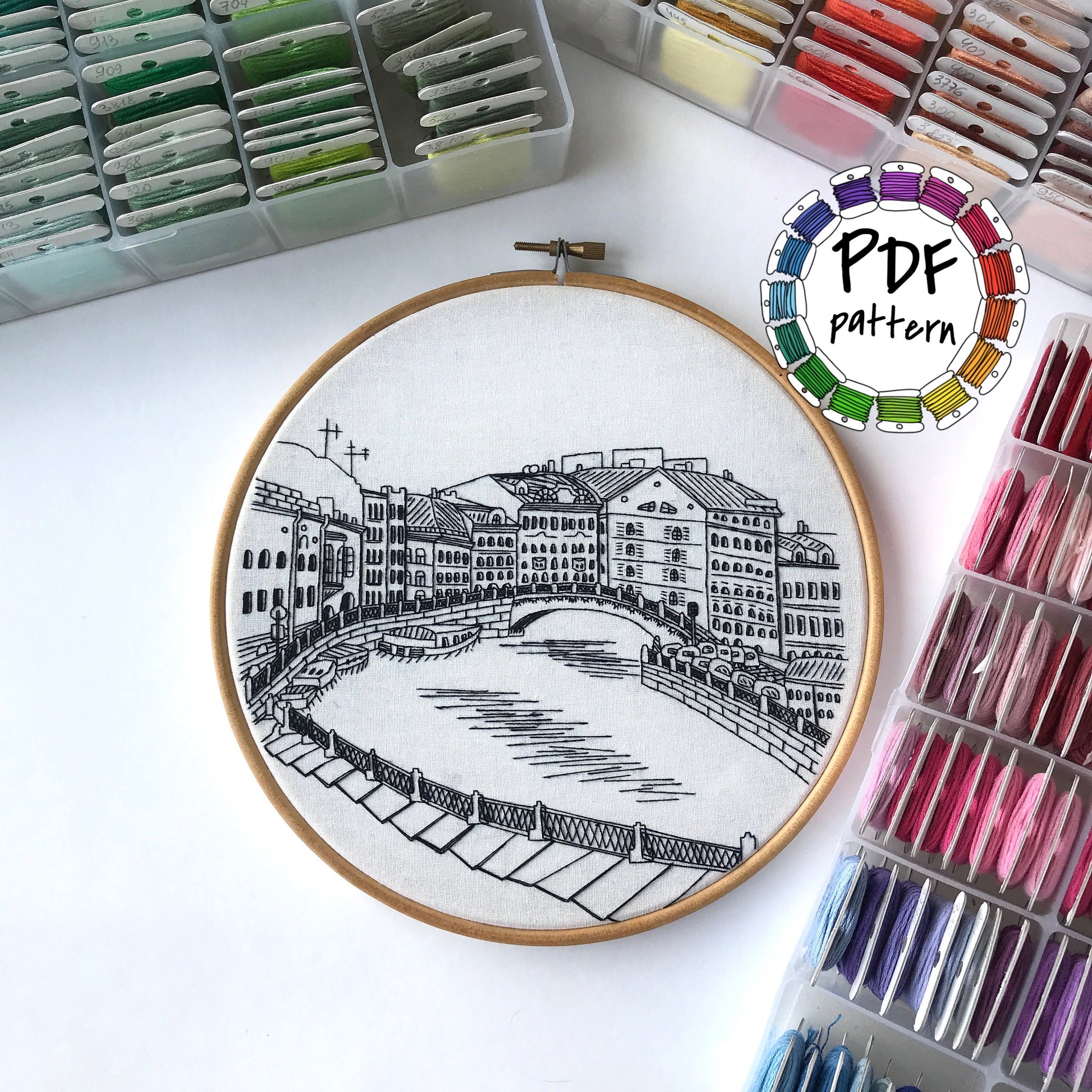 Hand embroidery pattern of Saint Petersburg with thorough embroidery guide.