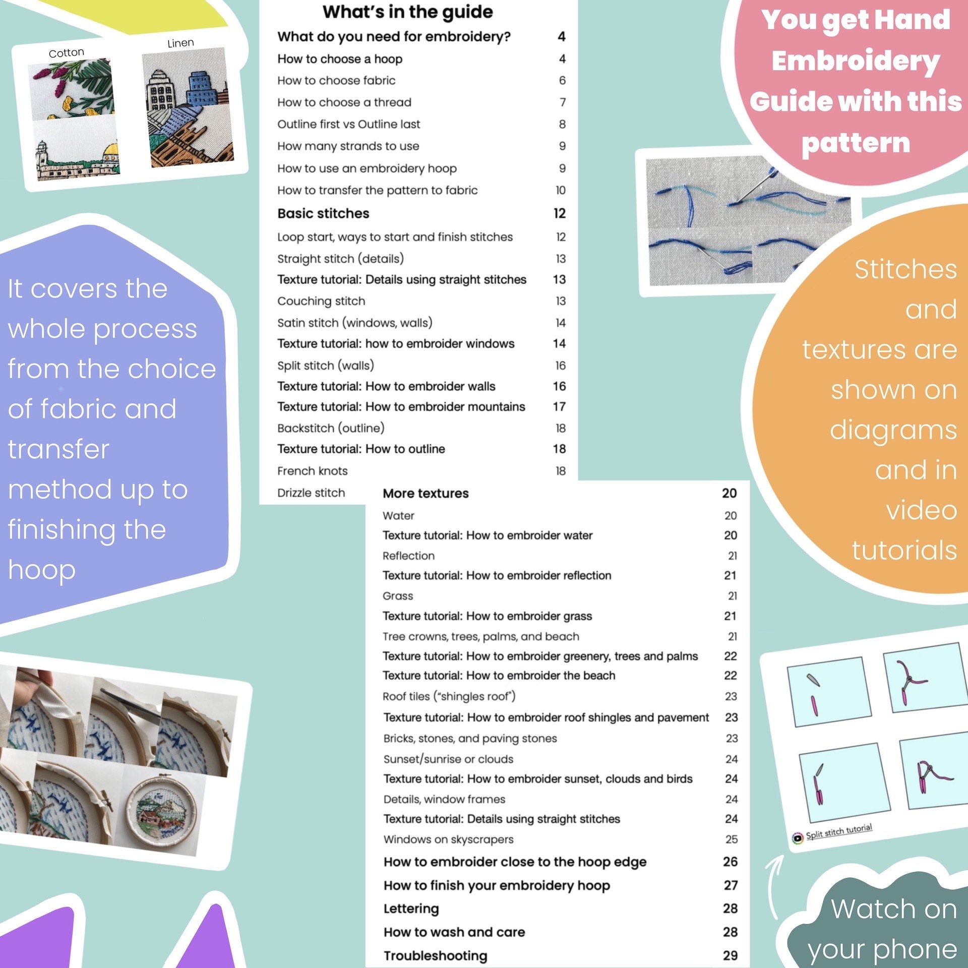 Hand embroidery pattern of Saint-Petersburg, Russia + thorough embroidery guide.
