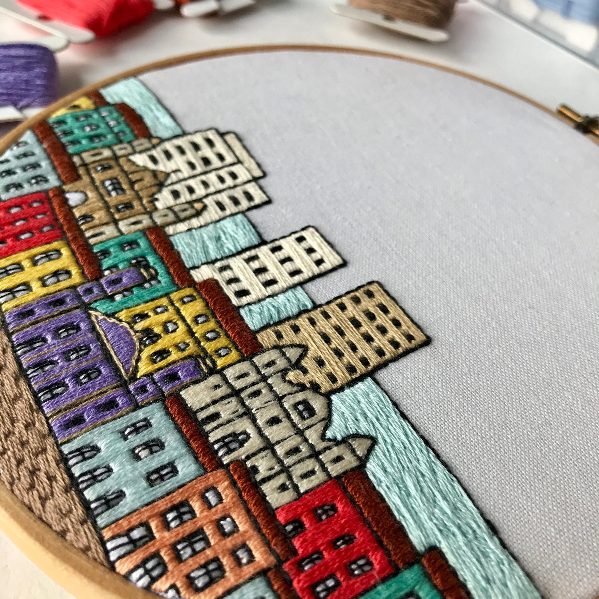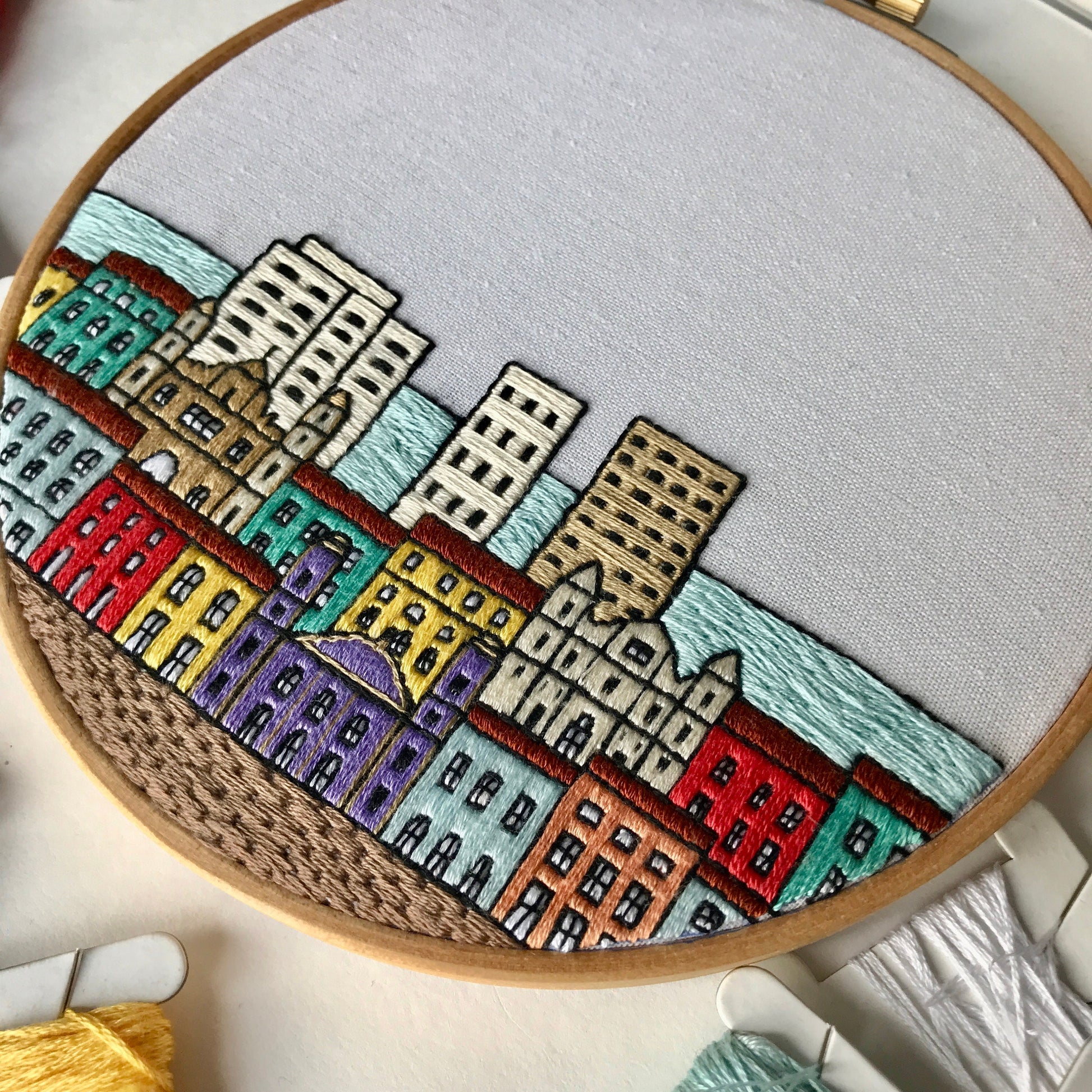 Hand embroidery PDF pattern of Salvador da Bahia, Brazil + thorough embroidery guide.