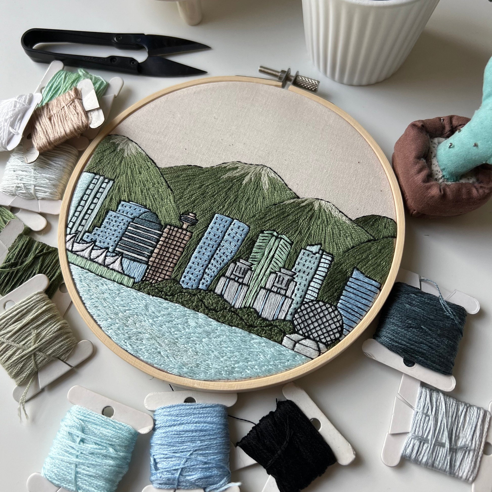 Hand embroidery PDF pattern of Vancouver, Canada + thorough embroidery guide.