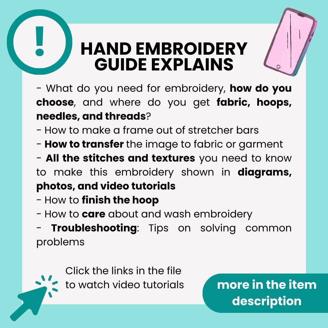 - All the stitches you need to know to make this embroidery are shown in diagrams, photos, and video tutorials