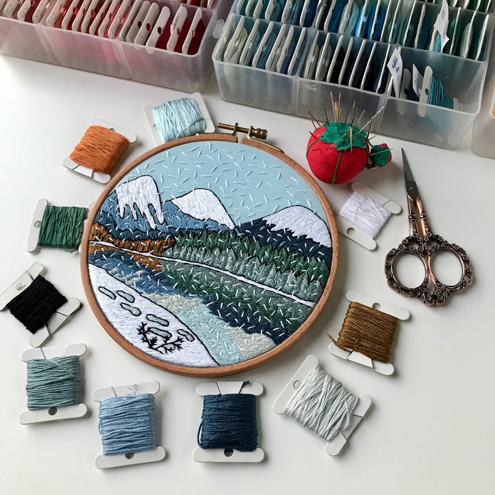 Hand embroidery pdf pattern - Winter landscape. December 2020 pattern, part of monthly pattern program. Create embroidery of winter scenery with step-by-step instructions.