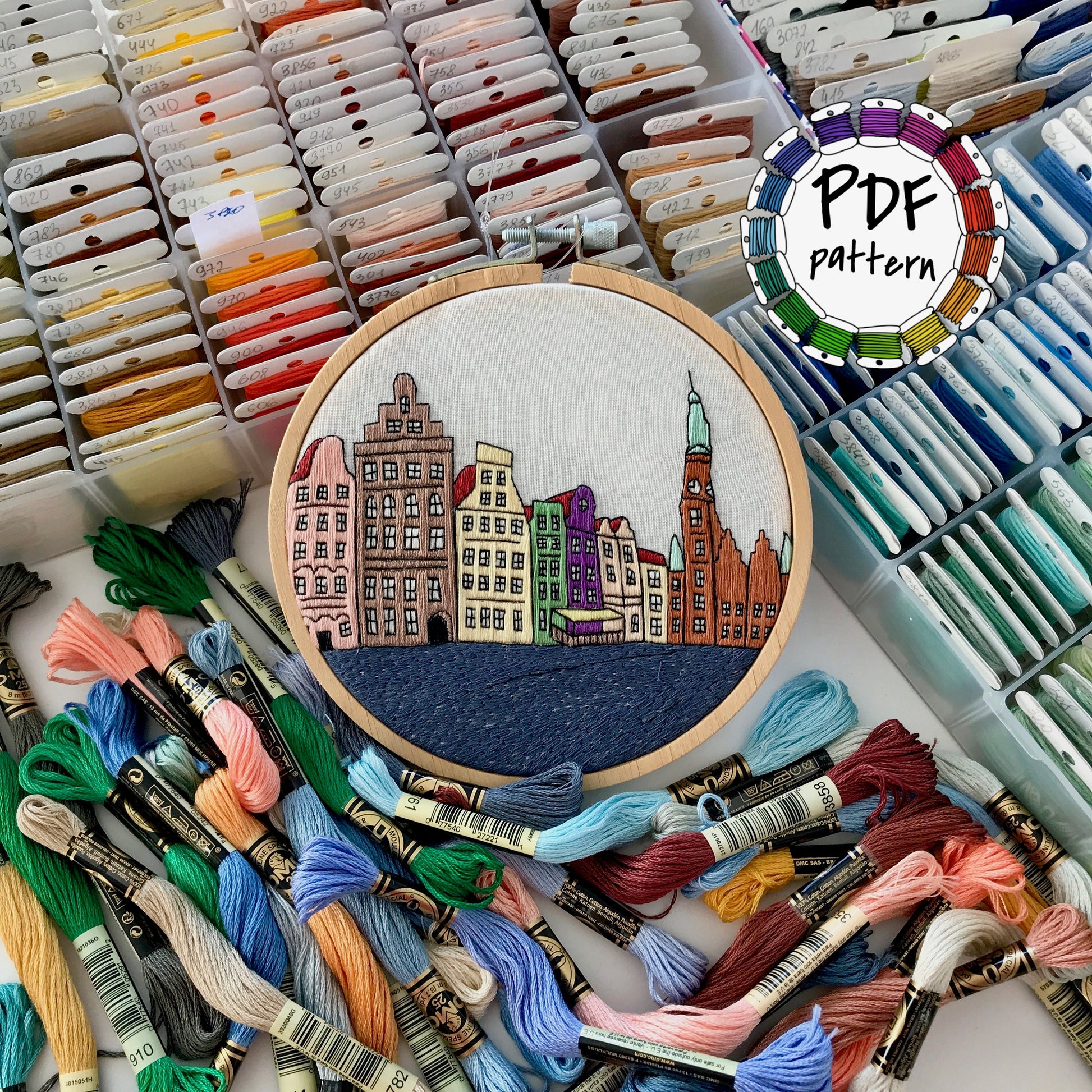 Wroclaw, Poland, Cityscape - Hand Embroidery Pattern (PDF)